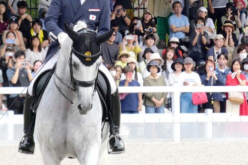 秋分の日の恒例行事「愛馬の日」。今年は仕事を午前中で切り上げ、12時半ごろに馬事公苑へ到着した。お目当ての馬場馬術「パドゥドゥ」が始まる直前だった。 umanicle.hatenablog.jp すでに正門前から人波が押し寄せ、園内は例年以上のにぎわいを見せていた…
