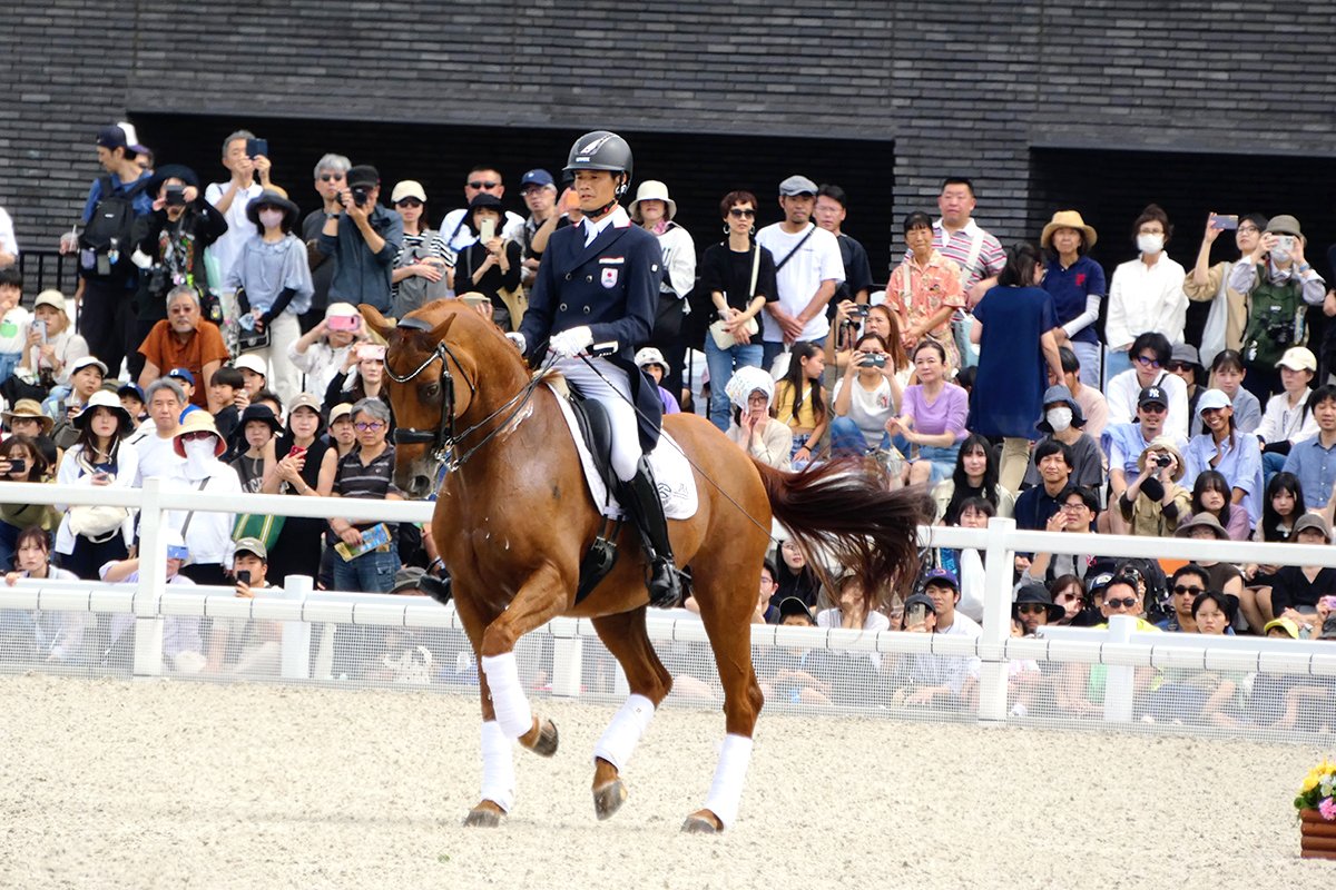 メインアリーナに到着したとき、会場はすでに人だかりで、演技は後方の隙間から覗き見るのがやっと。望遠レンズを構える余地などまったくなく、一眼レフでは立ち回れなかっただろう。広い馬場ゆえ私のiPhone14も撮影が難しい。そこでコンパクトかつ望遠機能を兼ね備えたLUMIXが大いに役立った。