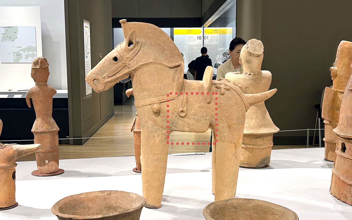 障泥は、騎乗時に馬が走ることで巻き上げる泥や水しぶきから騎乗者を守るための馬具だ。日本に朝鮮半島から馬が伝わったのは古墳時代といわれている。東京国立博物館を訪れたところ、その頃に作られた、皆さんおなじみ(?)の「馬形埴輪」にもすでに障泥が装備されていることが確認できた。それくらい昔からある馬具である。
