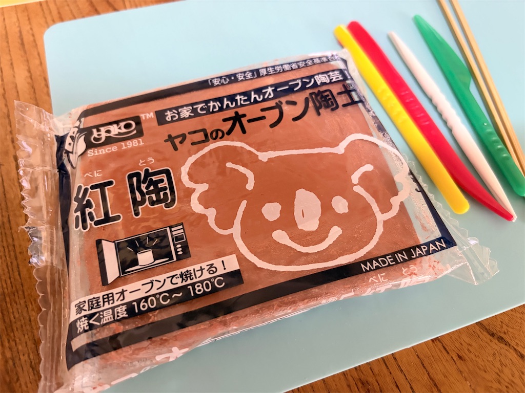 今回使用したのはヤコのオーブン粘土(400g)というもの。初めて使った。そのほか、粘土シート(粘土板)とヘラ各種、焼き鳥用の串、使い捨てふきん(不織布)をSeriaで購入。