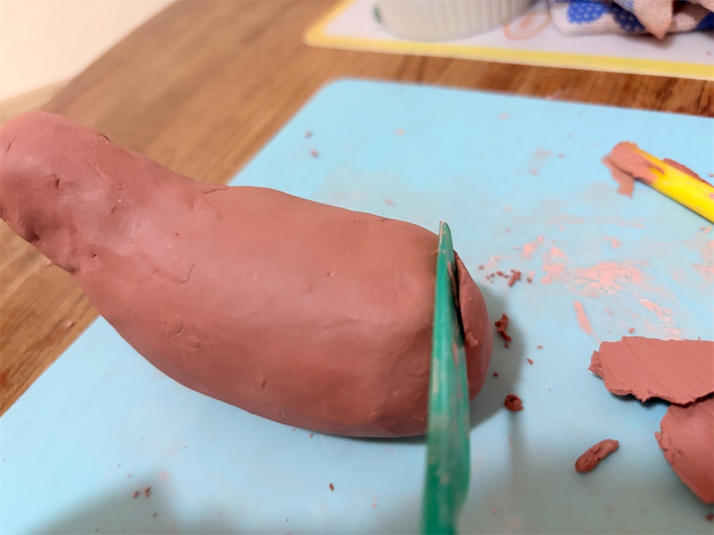 まず、粘土の扱いが想像以上に難しかった。私が今回使った粘土は「オーブン粘土」というもの。家庭用で簡単に焼き物ができるようにつくられた、練らなくても使える進化した粘土である。だから古墳時代の粘土とはきっとぜんぜん違うものなのだけれど、それでも扱いにはかなり苦戦した。